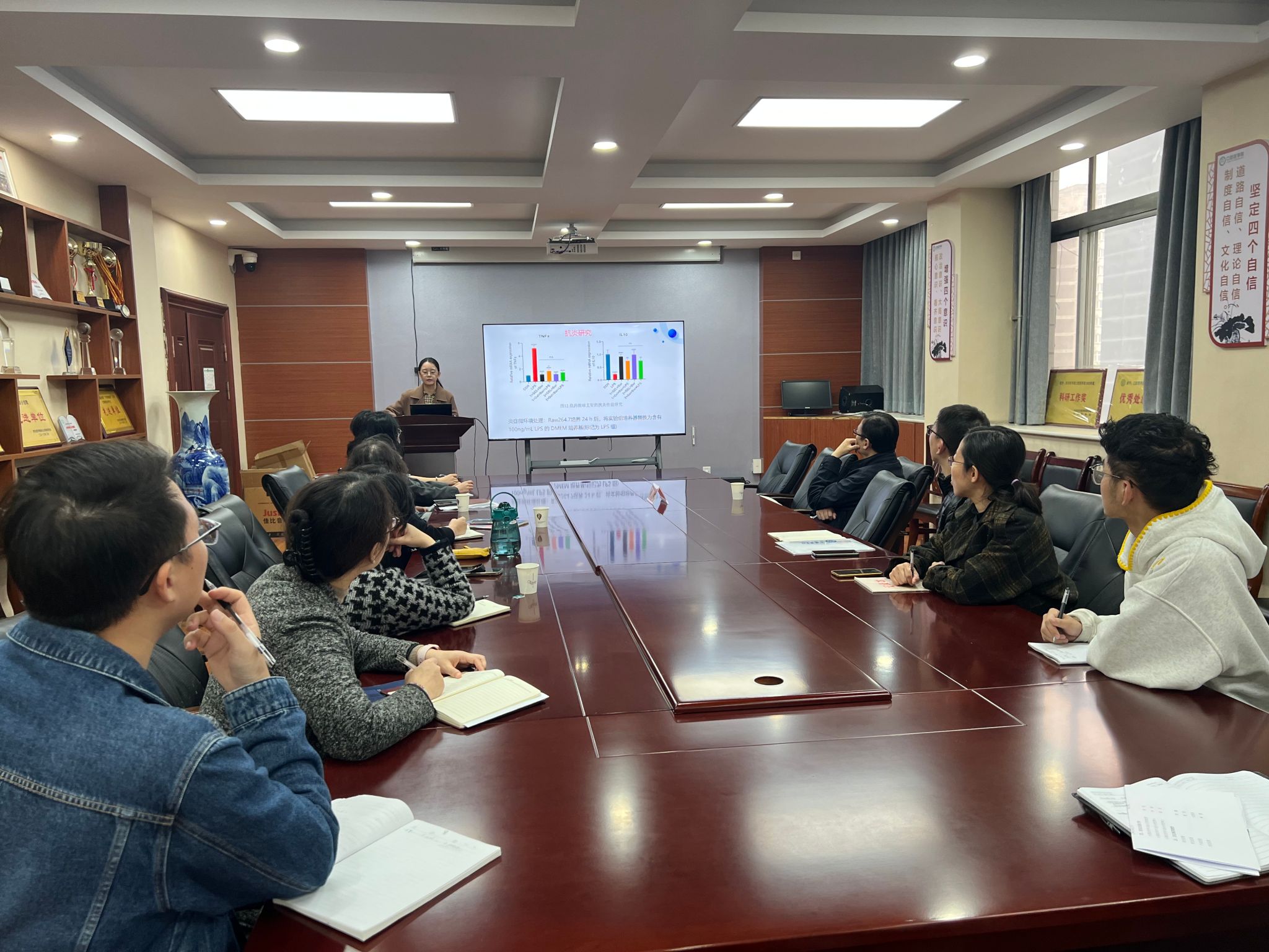 会议伊始,曾辉老师率先汇报课题进度。曾辉老师以清晰的逻辑和详实的数据,全面展示了课题的当前进展情况,包括已取得的阶段性成果以及面临的挑战。汇报完毕后,胡敏教授从专业的角度出发,分析了课题的优势与不足,并就下一步的研究方向和重点提出了明确的指导意见,为课题的深入推进指明了道路。