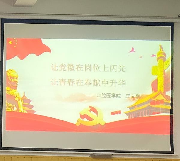 最后王科长分享了自己多年教学经验与心得体会。科长总结到,我们要用一种严肃、认真、负责的态度对待自己的工作,忠于职守,尽职尽责。其次要精业,干一行、爱一行、精一行,成为本专业精通业务的行家里手。要带着问题用心工作,边干边学,边学边干,以干促学,以学促干,才能越来越胜任自己的岗位。王科长说到:“作为医学生我们要敢于对自己负责,对我们的家庭负责,对我们的职业负责。希望大家以目前的身份可以指导自己,引领我们身边的人;让你佩戴的党徽将来能在你所在的岗位上闪光,你所做的事能传递传承下去。”