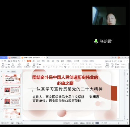 张明霞副教授从团结奋斗的哲学概念开篇,从理论逻辑、历史逻辑、实践逻辑和政治要求(时代要求)这四个方面介绍了团结奋斗对于中国人民的意义。张明霞副教授表示在新时代下,团结奋斗就是全国各族人民和海内外中华儿女在中国共产党的旗帜下同心共圆中国梦。