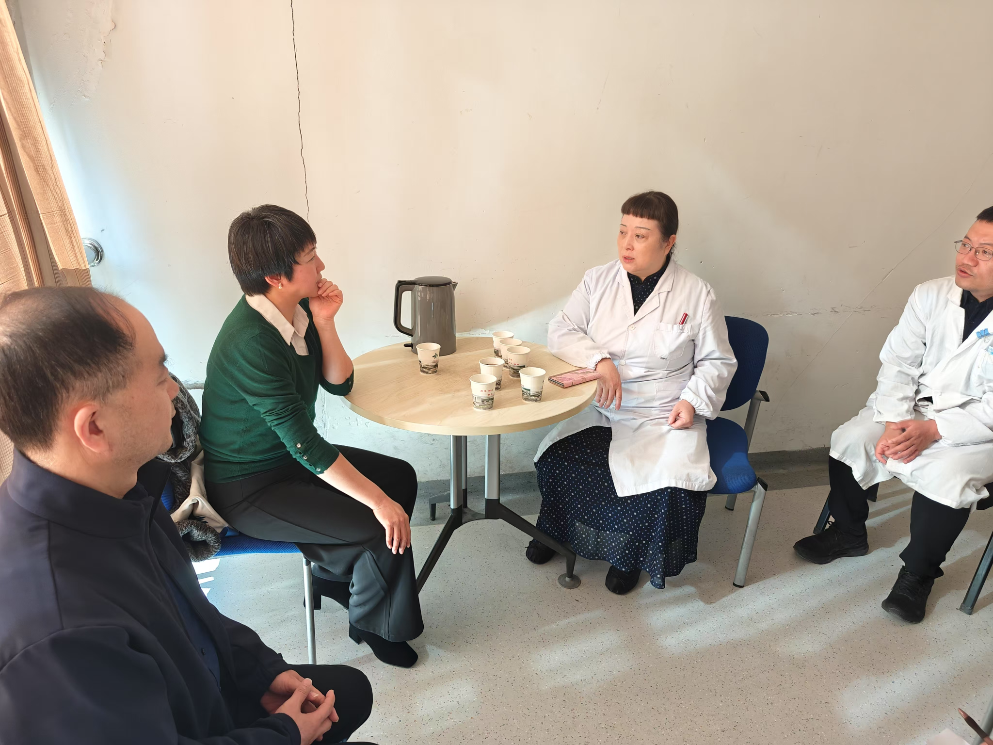 到达医院后,娄鸣首先与实习医院主管领导及口腔科室负责人进行了座谈。双方就实习生的表现、实践教学安排、临床带教等方面展开了深入交流。医院主管对我院实习生的专业素养和工作态度给予了高度评价,同时也针对实习过程中存在的一些问题提出了宝贵的意见和建议。娄鸣对院方的积极合作表示感谢,她表示希望院方进一步优化实习科室轮转,有助于提升实习生口腔全科能力,同时对于实习生管理经验与院方展开交流。双方还就进一步加强合作、未来开展实习年会等方面达成了共识。