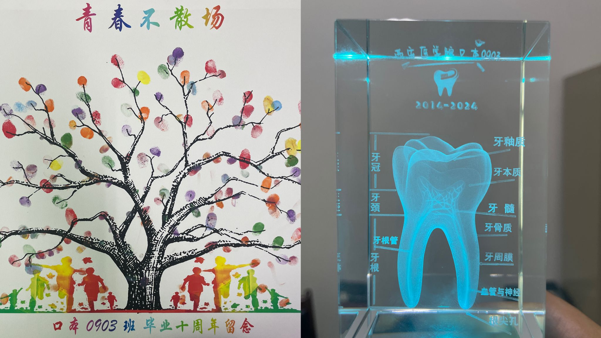 会后,校友们给老师们赠送了精心制作的伴手礼和自己设计的毕业十周年纪念。校友们表示以后会常回母校看看,与老师们加强沟通与联系,共谋事业发展。随后,大家参观了校园环境,品尝了学生食堂饭菜,并进行打卡合影留念。