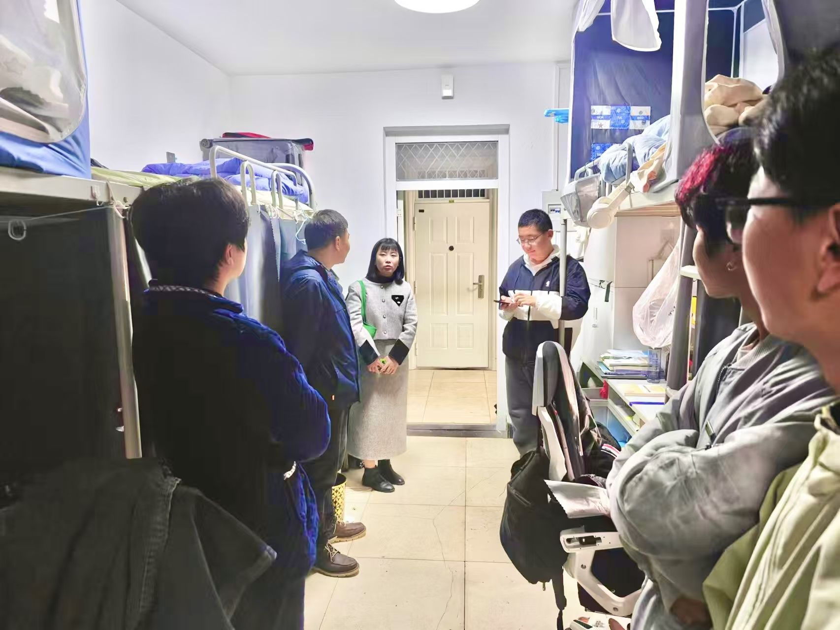 学院向李爽颁发聘书,聘请李爽为学院“‘一站式学生社区导师。随后,大家一同走访2023学生宿舍,与同学们进行交流与互动,了解学生需求。