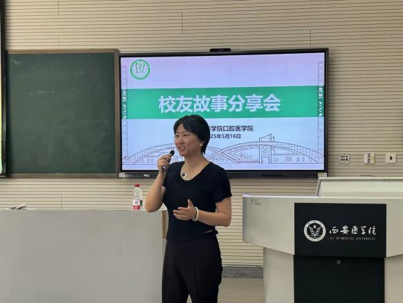 最后,学院党总支书记娄鸣总结发言。她对校友们的精彩分享表示衷心感谢,并鼓励同学们以校友们为榜样,努力学习,不断提升自己,在未来的职业生涯中绽放光彩。同时,她也希望校友们能够继续关心和支持学院的发展,常回母校看看,共同推动口腔医学教育事业的进步。