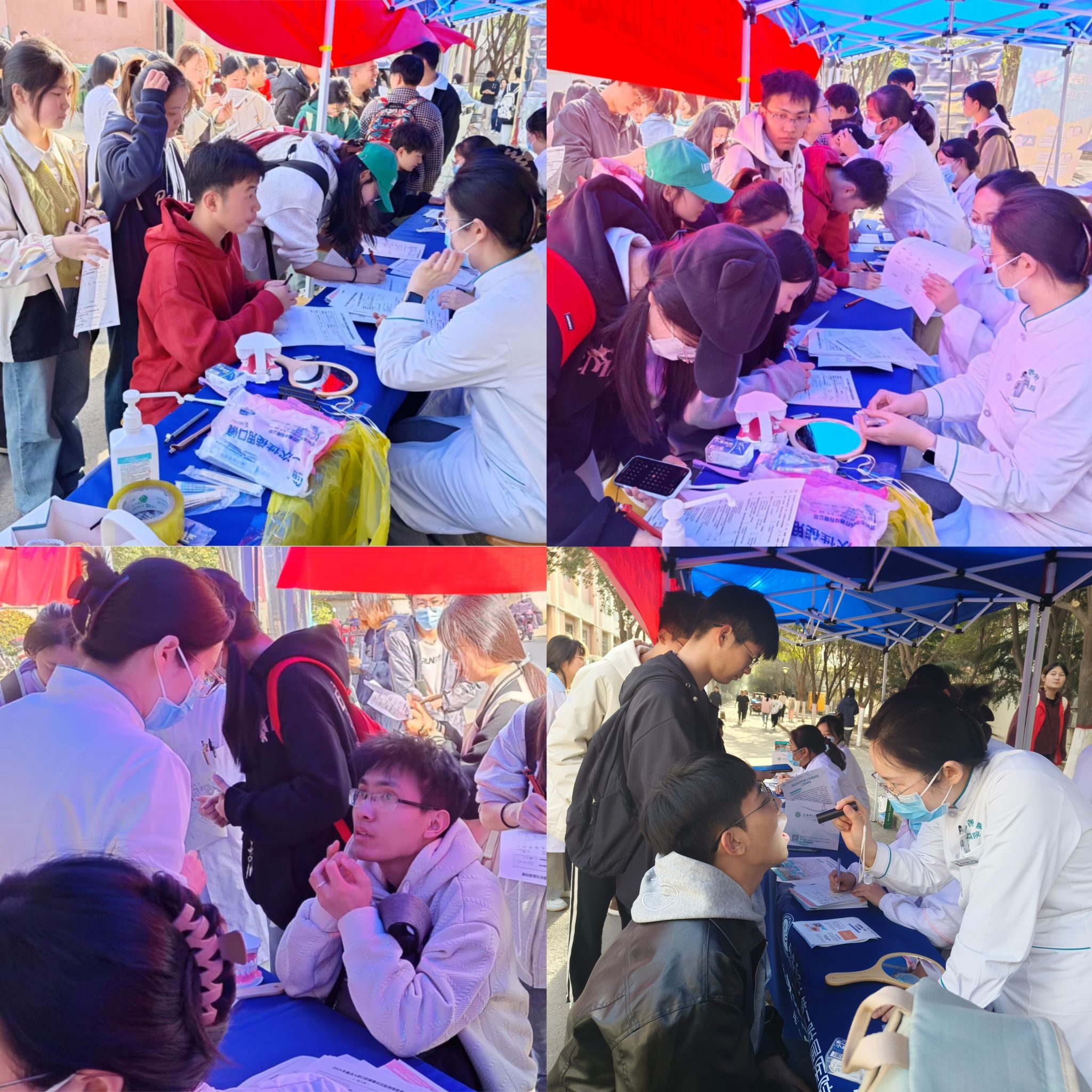 现场的口腔医护人员为前来咨询的同学进行仔细的口腔检查,结合学生自身情况,给出初步的治疗方案,他们热情耐心地回答每一位咨询者的问题,为咨询者们提供针对性建议,并对有治疗需求的同学进行信息登记。