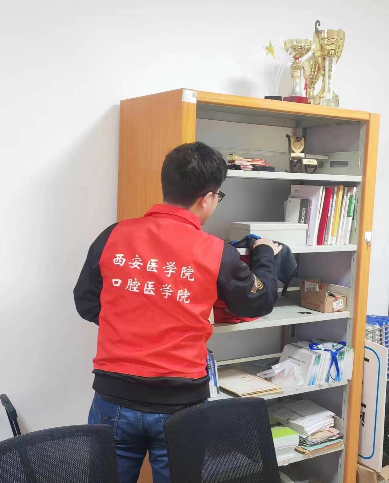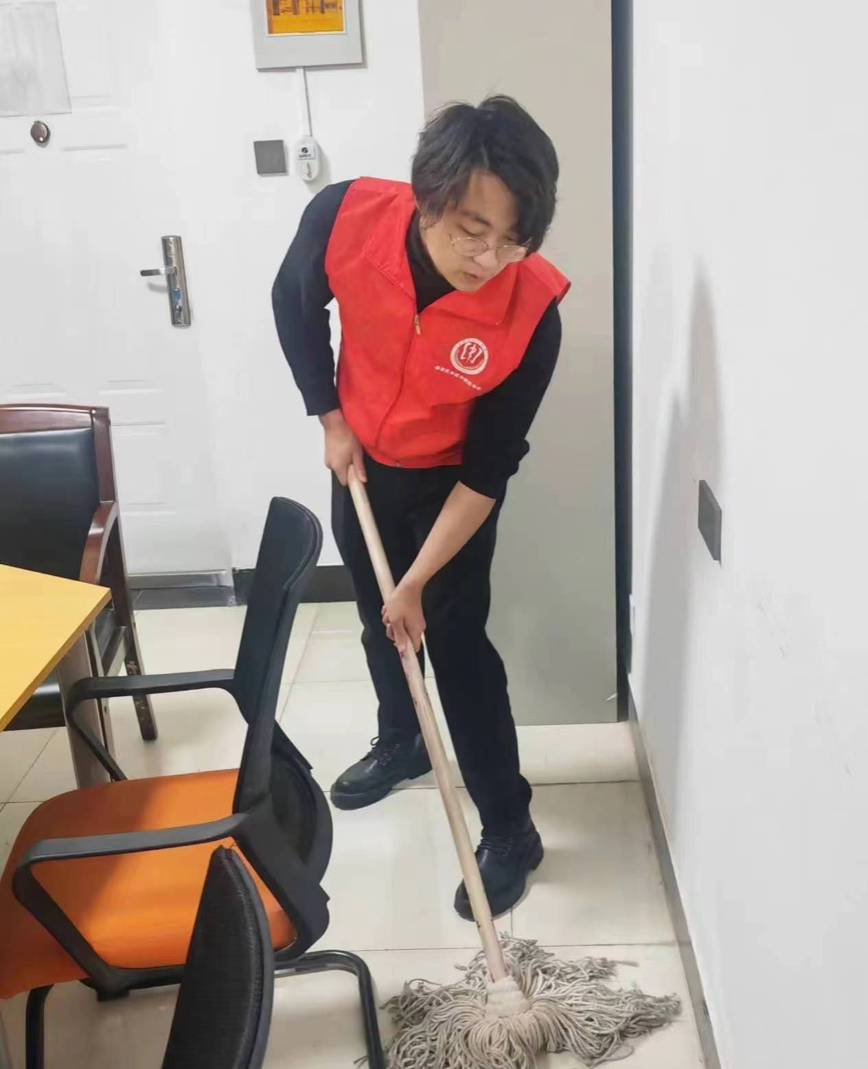 志愿者打扫党团活动室