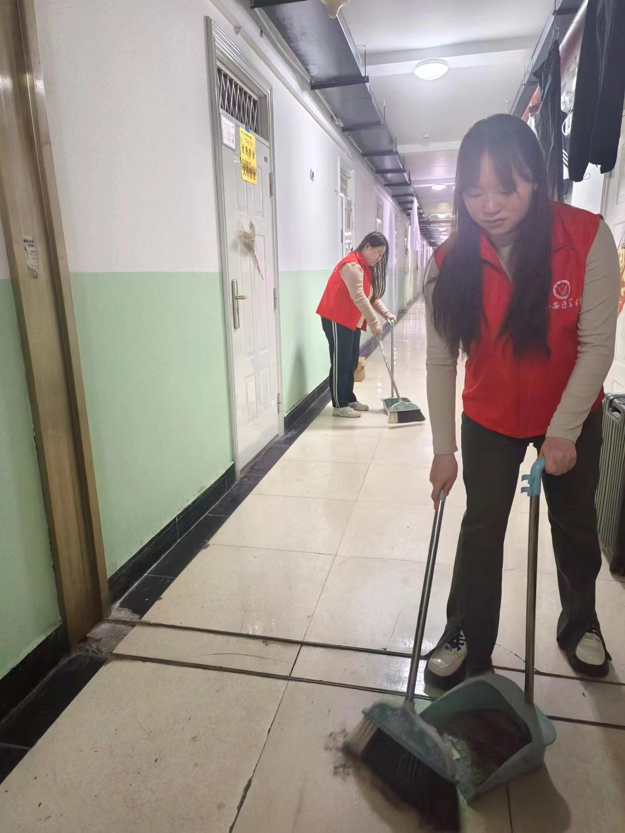 志愿者打扫楼道公共区域