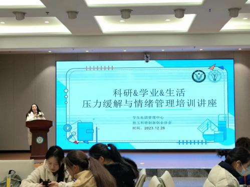 为贯彻落实我校团员和青年主题教育,增强同学们面对科研学业压力的管理能力和应对技巧,降低负面情绪影响,更好地平衡学习,科研和生活。2024年12月26日晚,致玉科研创新创业协会于图书馆五楼会议室开展主题为“科研学业及生活压力缓解与情绪管理”培训讲座。此次培训讲座由石梦婧老师主讲,bevictor伟德国际1946辅导员曲建利老师及协会34名学生参加学习。