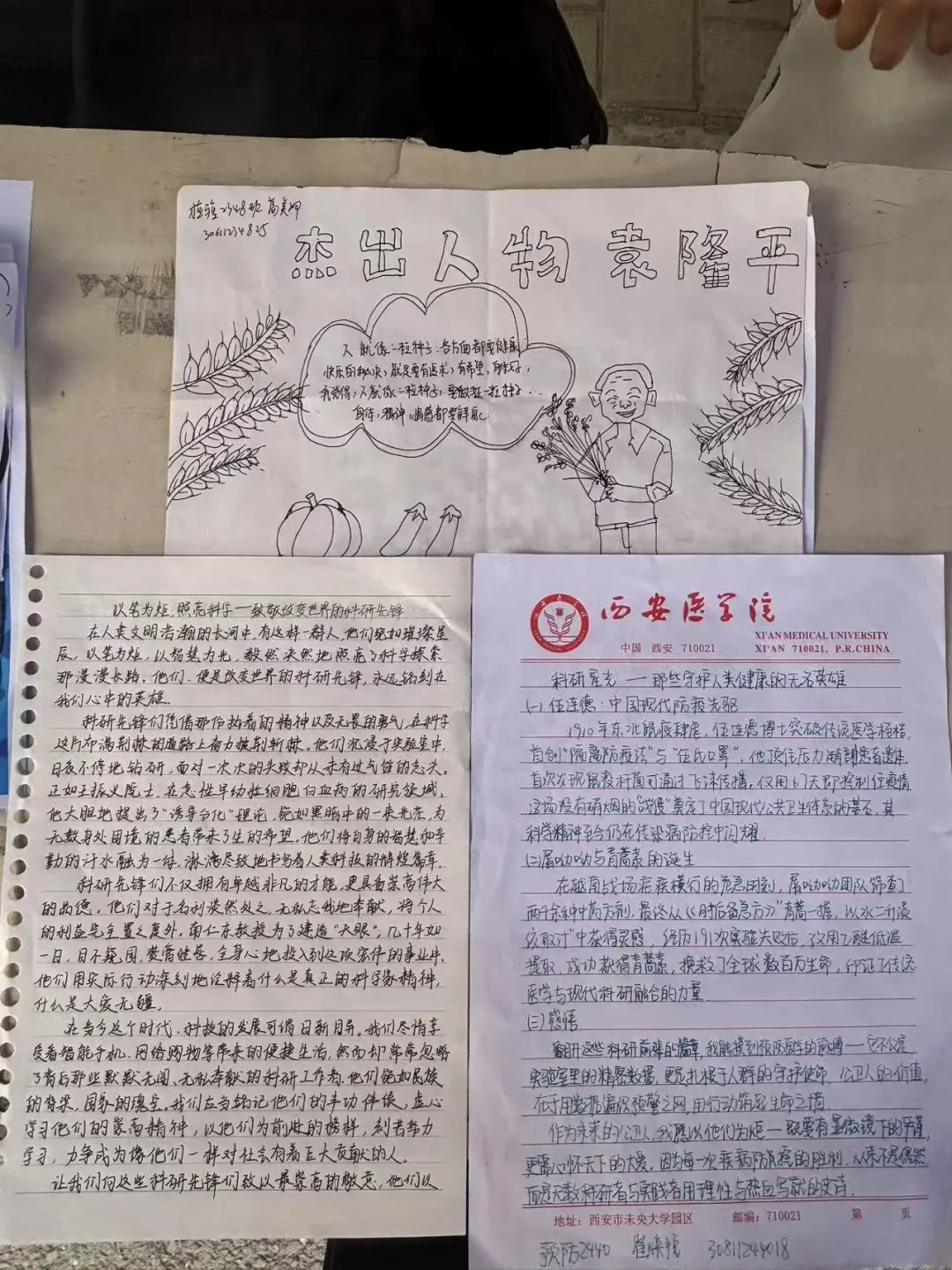 本次活动分为“分享记录”与“互动问答”两个环节。在分享记录区,同学们纷纷拿起便签,将自己所了解的科研内容、科研事迹书写其上,随后张贴在展示板上。一张张便签承载着大家对科研的热情,汇聚成一面充满知识与创意的“科研之墙"。同学们精心绘制色彩斑斓、内容丰富的手抄报,以生动的图文,展现人工智能、生物科技等领域的魅力。还有不少同学带来了自己撰写的文章,从不同角度阐述对科研的思考,字里行间流露出对科研先锋的崇敬。