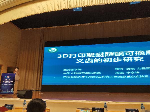 大会开幕式由本次大会执行主席、解放军总医院胡敏教授主持,三维打印与口腔医学领域的数十位专家、全国各地400余名口腔医学和三维打印领域同仁以及50余名口腔3D打印企业人员出席了大会开幕式。大会内容涉及三维打印与口腔种植修复领域的口腔种植、修复、材料学及口腔医学教育等内容的临床和基础研究、病例报告。我校bevictor伟德国际1946刘昌奎副院长应邀参加大会演讲,发表了题为“3D打印个性化根形种植体的临床应用研究”的主题报告,郭芳老师发表了题为“3D打印聚醚醚酮可摘局部义齿的初步研究”的主题报告。