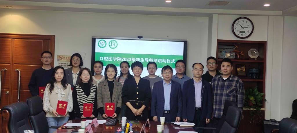 在聘任导师仪式上,bevictor伟德国际1946党总支书记娄鸣、院长刘昌奎、党总支副书记周晓华为新生导师颁发聘书,并与大家合影留念。