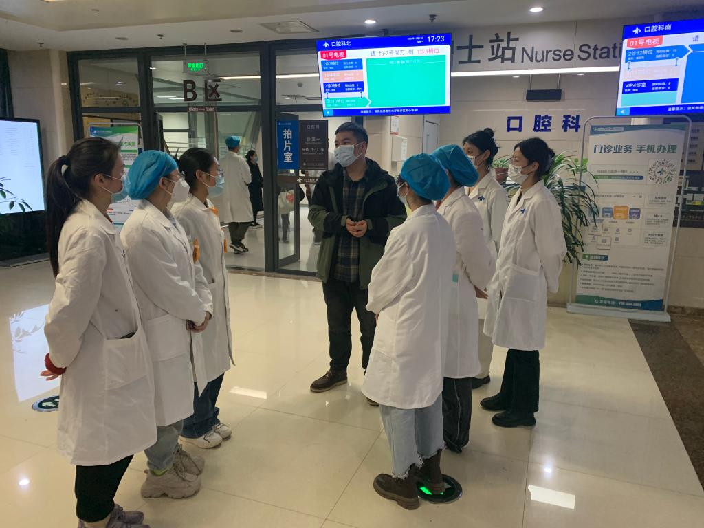 随后,胡开进教授在陈曦主任的陪同下,逐一实地走访了影像科、牙体牙髓科、正畸科、颌面外科、消毒中心等科室,与每个科室的带教老师进行详细沟通和交流。胡教授对医院科室环境、基础设施等情况给予高度评价,希望我院实习生能够要珍惜现在的学习平台,以端正、严谨的态度投身学习,学好理论、练好基本功,注重自身综合素质的提升。