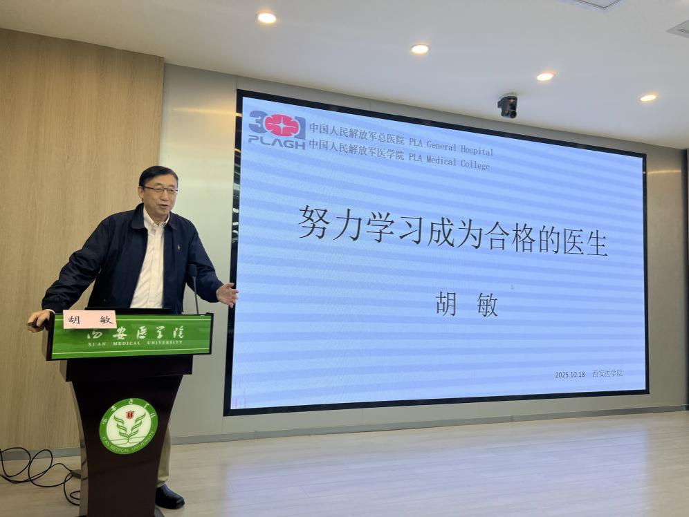 10月18日下午,bevictor伟德国际1946特邀中国人民解放军总医院胡敏教授举行《努力学习成为一名合格的医生》专题讲座。讲座由学校党委副书记姚文柱主持,bevictor伟德国际1946全体教师及学生代表参加。