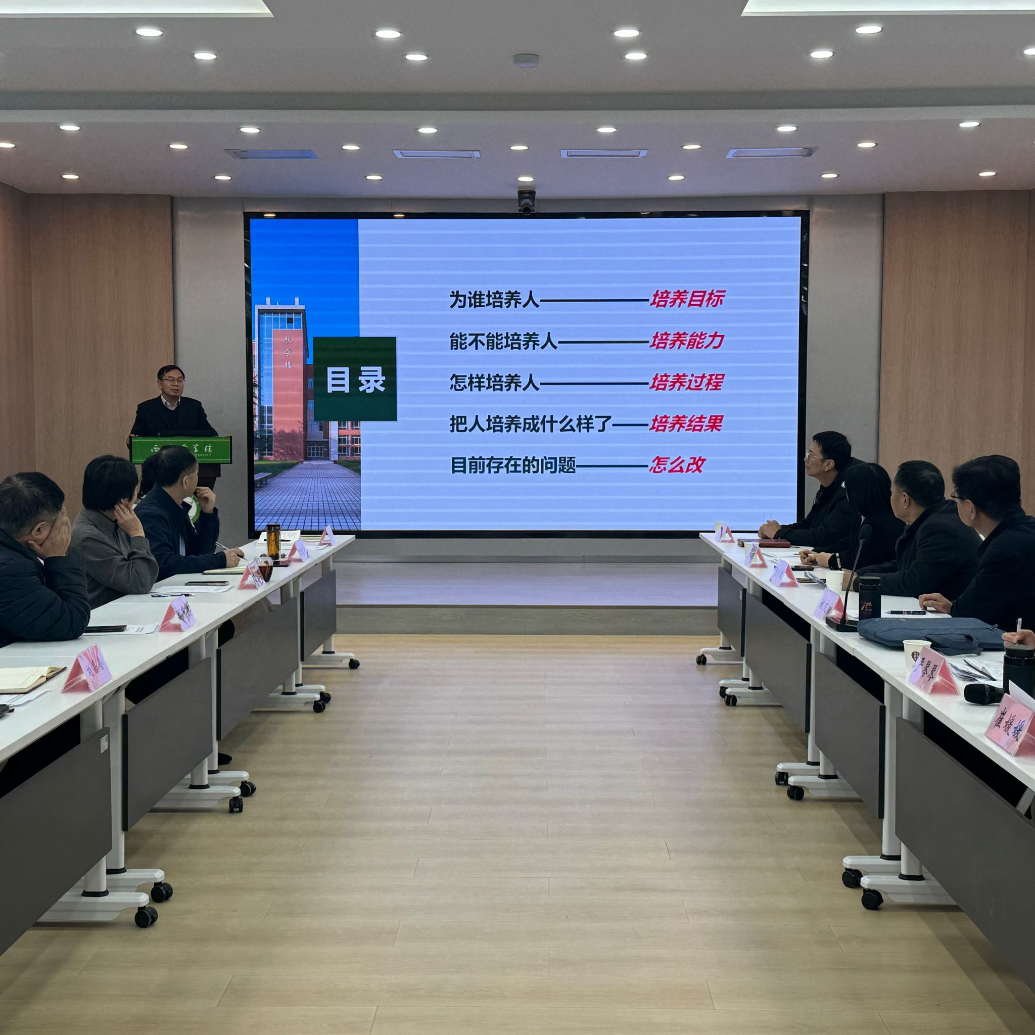 刘昌奎对督察组一行表示欢迎,并以审核评估一级指标为指引,紧紧锚定“为党育人、为国育才”的目标导向,充分结合学院在学科建设、人才培养等方面的特色优势,对学院本科教育教学审核评估工作进行了全面细致的自评汇报。