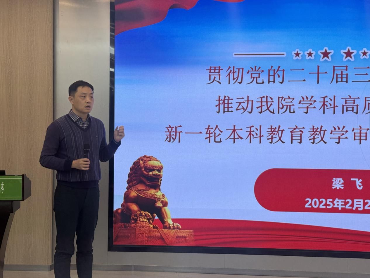 梁飞详细传达了和新盈副校长的培训报告,包括新一轮专家组如何开展工作以及我校如何做好迎评冲刺工作等方面。学院也将按照学校第二轮审核的反馈意见,进一步完善相关材料,推动落实本科教育教学审核评估的迎评准备工作。